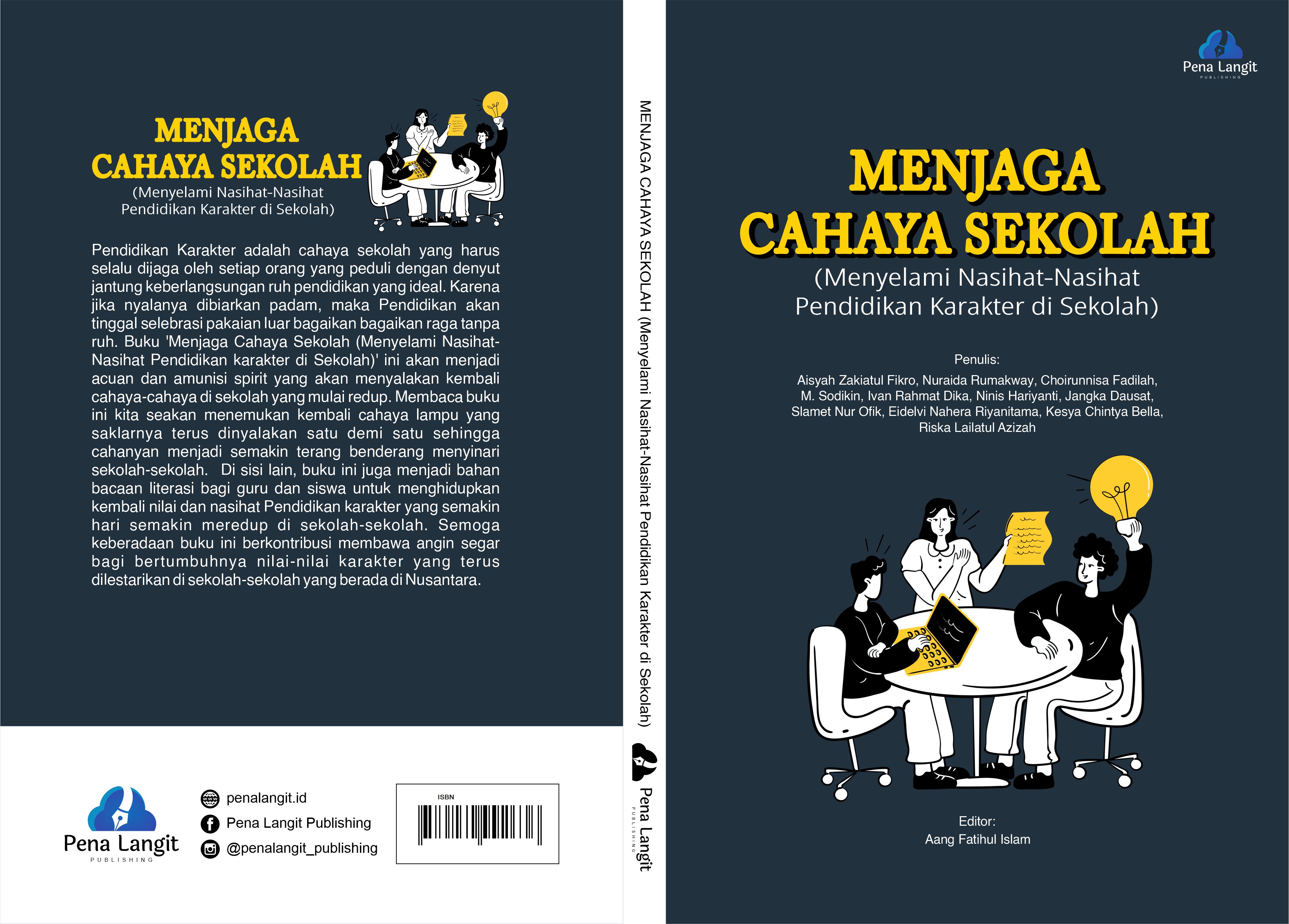 Pendidikan Karakter adalah cahaya sekolah yang harus selalu dijaga oleh setiap orang yang peduli dengan denyut jantung keberlangsungan ruh pendidikan yang ideal. Karena jika nyalanya dibiarkan padam, maka Pendidikan akan tinggal selebrasi pakaian luar bagaikan bagaikan raga tanpa ruh. Buku ‘Menjaga Cahaya Sekolah (Menyelami Nasihat-Nasihat Pendidikan karekter di Sekolah)’ ini akan menjadi acuan dan amunisi spirit yang akan menyalakan kembali cahaya-cahaya di sekolah yang mulai redup. Membaca buku ini kita seakan menemukan kembali cahaya lampu yang saklarnya terus dinyalakan satu demi satu sehingga cahanyan menjadi semakin terang benderang menyinari sekolah-sekolah. Di sisi lain, buku ini juga menjadi bahan bacaan literasi bagi guru dan siswa untuk menghidupkan kembali nilai dan nasihat Pendidikan karakter yang semakin hari semakin meredup di sekolah-sekolah. Semoga keberadaan buku ini berkontribusi membawa angin segar bagi bertumbuhnya nilai-nilai karakter yang terus dilestarikan di sekolah-sekolah yang berada di Nusantara.